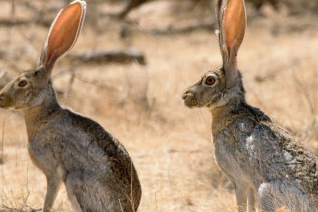 Jackrabbits can run at speeds of up to 45 mph and use their long, powerful hind legs to cover large distances quickly. These hares are known for their zigzag running pattern, which helps them evade predators like coyotes and hawks. Their speed is key to their survival.