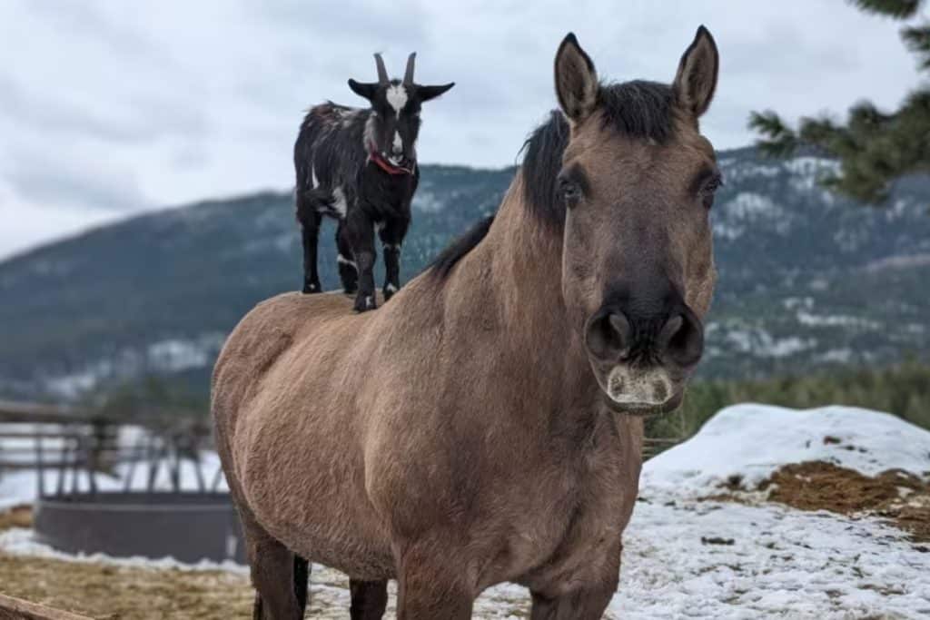 Horses and goats can make great friends, especially when raised together on farms or ranches. Horses are naturally social, and goats, with their playful and curious nature, make excellent companions. The two species often graze together, play, and even snuggle up for naps. This unlikely friendship has practical benefits too, as having a buddy helps both animals feel more secure and reduces loneliness.