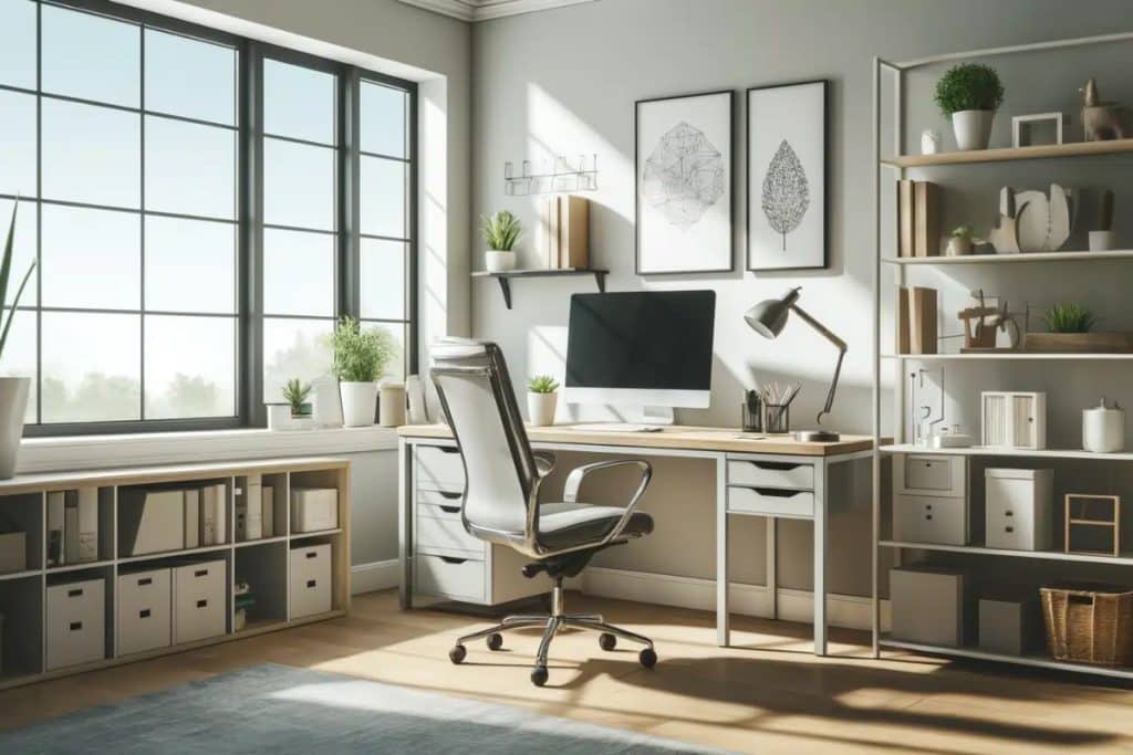 Less is often more when it comes to home office setups. Only keep essentials like your computer, notebook, and a few pens on your desk. This helps eliminate distractions and allows you to focus on what’s important.