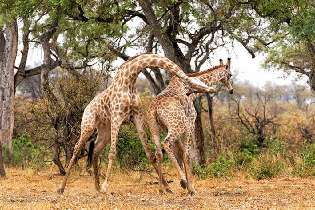 Male giraffes engage in “necking,” a form of fighting where they swing their long necks at each other. These battles help determine who’s stronger and more fit to mate. The winner gains the attention of nearby females. It’s a literal clash of the titans with a romantic twist.