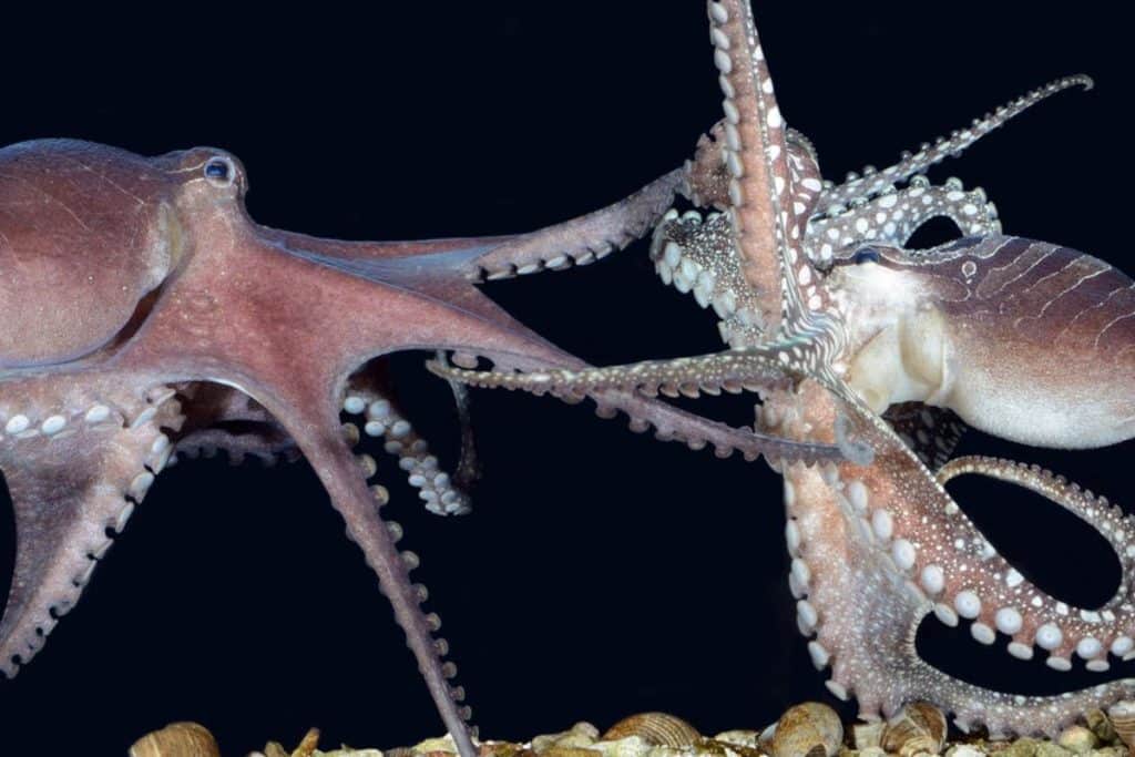 Octopuses can be surprisingly tender when courting. Males extend a specialized arm to pass sperm packets to females, often accompanied by gentle touches. These intelligent creatures may even use their color-changing abilities to express interest and mood during the process.