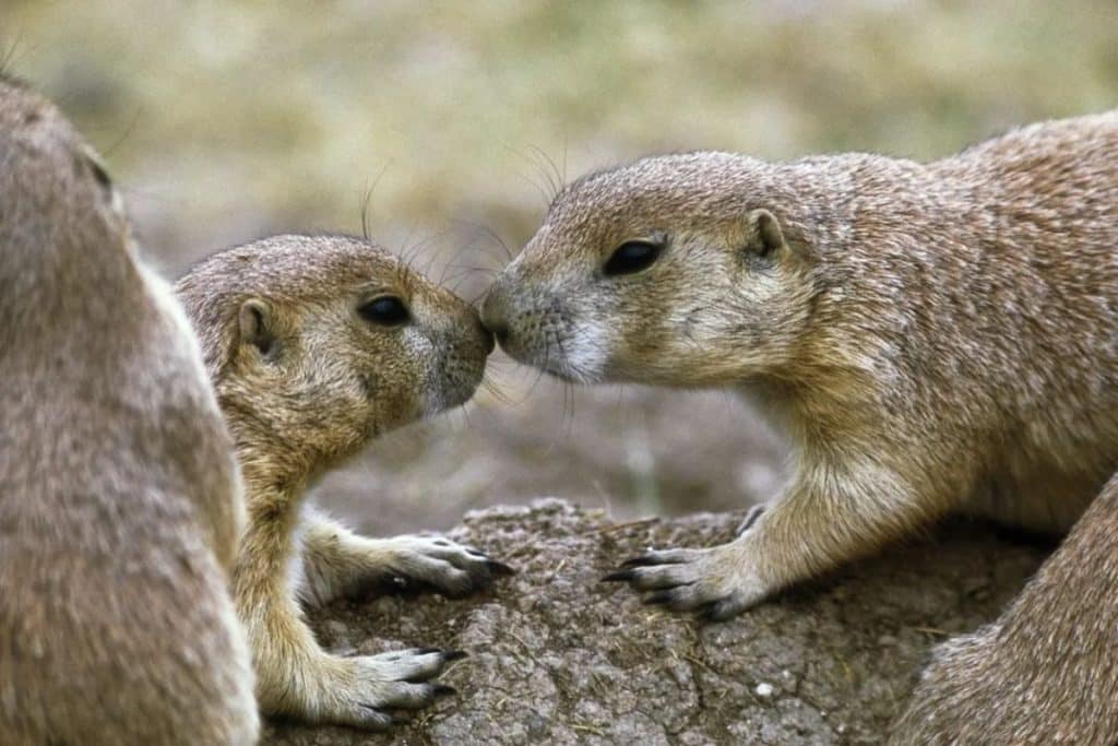Prairie dogs greet each other with what looks like a kiss. This behavior helps them identify friends and family, but it’s also a way to bond with a mate. These affectionate interactions strengthen their connection and prepare them for raising young.
