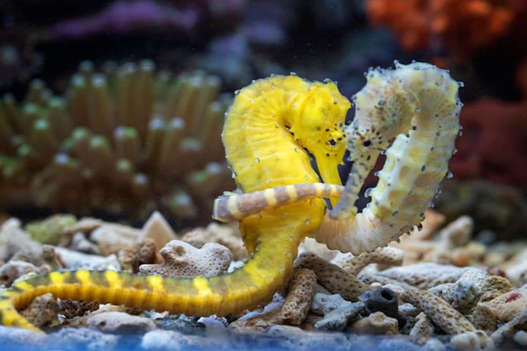 Seahorses engage in a beautiful dance that can last for days. The male and female link tails and move together in a synchronized manner. This dance strengthens their bond before mating. Unlike most animals, it’s the male seahorse that carries and gives birth to the babies.