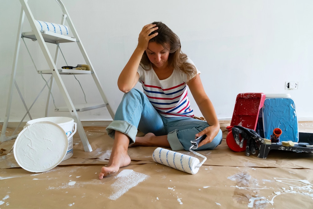 Painting a room can seem like a great DIY project—until you realize paint is unpredictable. This unfortunate DIYer forgot to tape off the trim and ceiling, so their “fresh” new wall color ended up splattered on the floor, the windows, and a little on themselves. Picasso they were not.