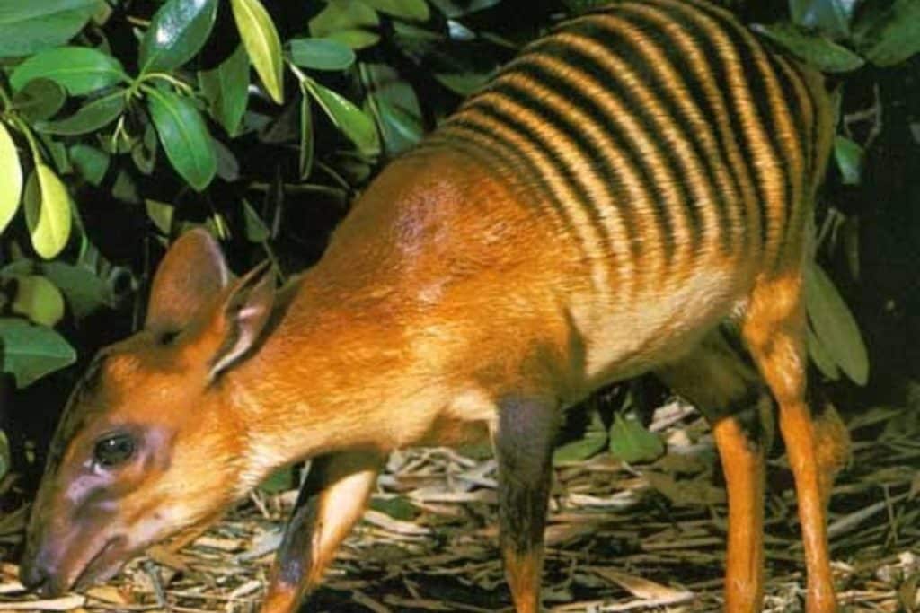 The zebra duiker is a small antelope with striped markings, resembling a zebra. Found in the forests of West Africa, it’s a shy and elusive creature. Zebra duikers feed on fruits and leaves, often foraging in dense vegetation. Their unique appearance helps them blend into their surroundings and avoid predators.