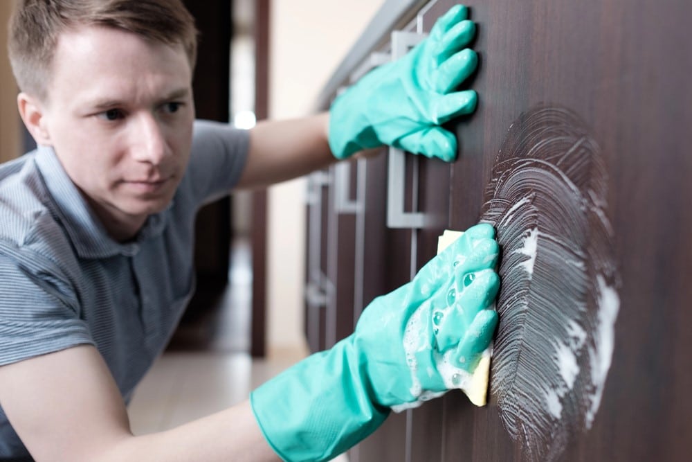 Mix one cup of water with two tablespoons of lemon juice and a few drops of olive oil. Shake well and spray onto a microfiber cloth before dusting. The lemon juice cuts through grease and the olive oil helps protect wood surfaces.