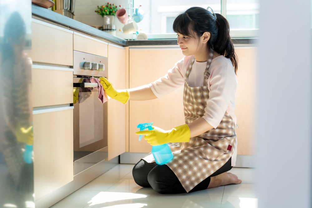 Make a thick paste with half a cup of baking soda, a few drops of dish soap, and water. Spread the paste inside the oven, leave it overnight, and scrub with a sponge in the morning. Wipe with a damp cloth to remove residue.