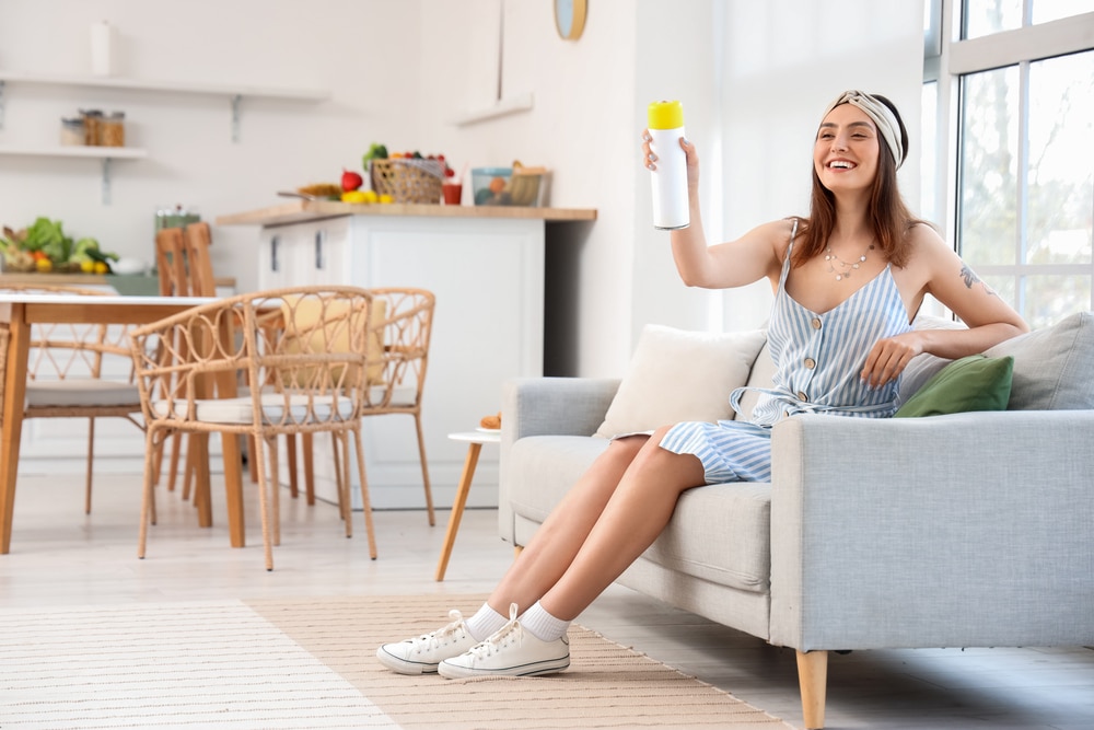 In a spray bottle, mix one cup of water, two tablespoons of vodka (or rubbing alcohol), and 10-15 drops of your favorite essential oil. Spray around the house for a natural, chemical-free air freshener.