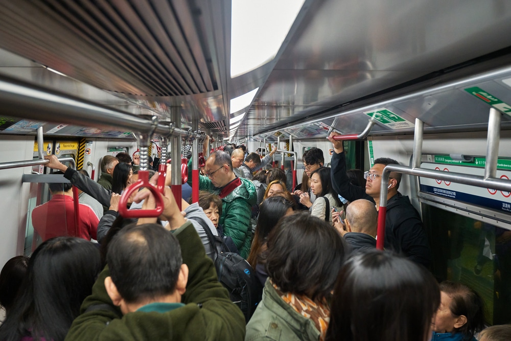 Everyone on the platform waits patiently, hoping for a spot to open up. But as soon as the doors open, it’s a mad dash. People pack in, one after another, until it’s a barely-breathing pile of bodies, and no one’s quite sure how they’re going to get out at their stop.